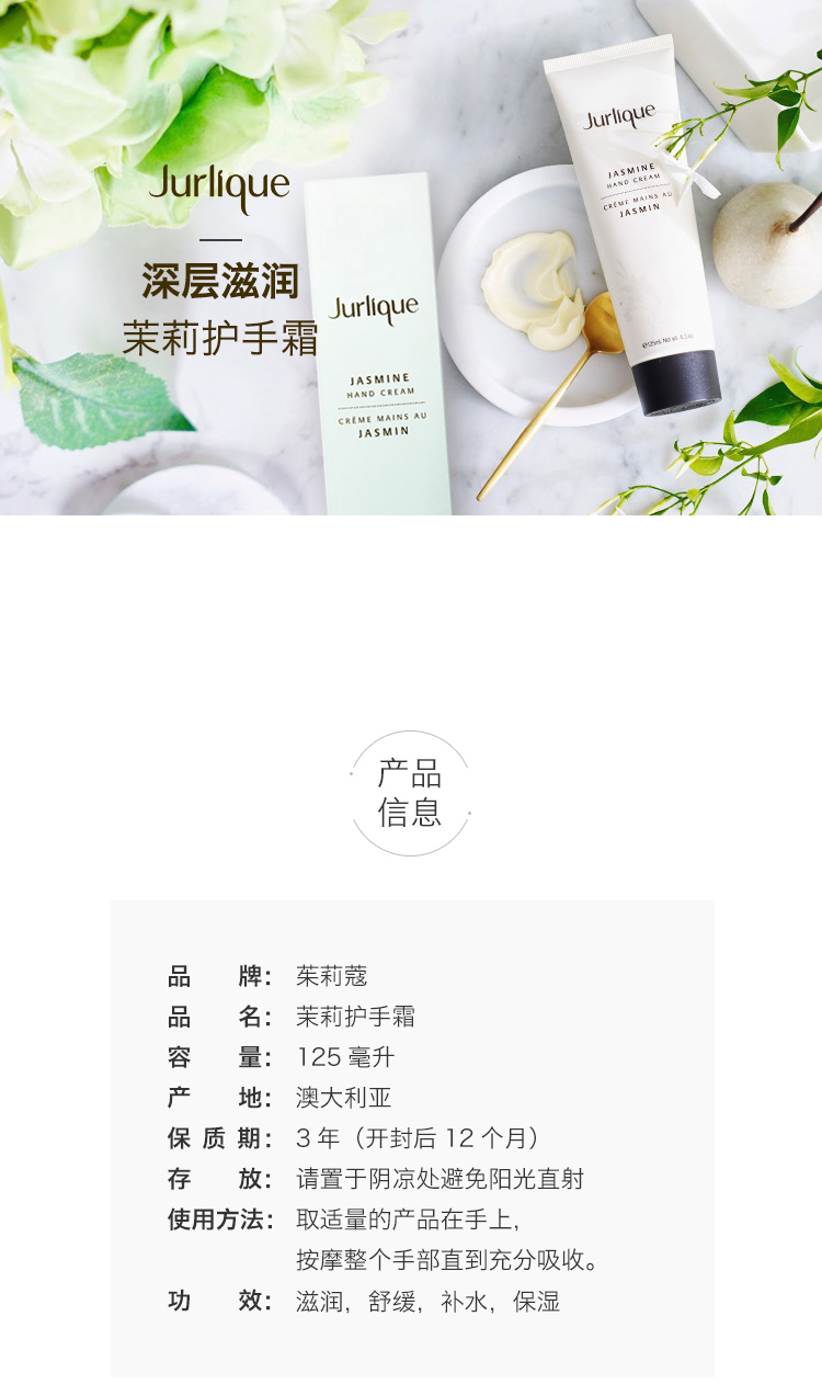 Jurlique 茱莉蔻 滋润护手霜茉莉花 125ml